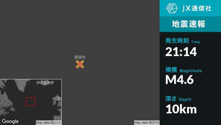 | 震源地 | グリーンランドのNanortalikから南東940kmの地点 |