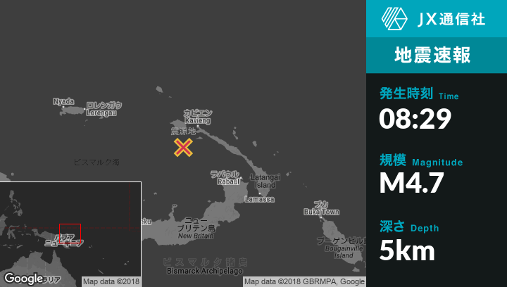 | 震源地 | パプアニューギニアのKaviengから南西77kmの地点 |
