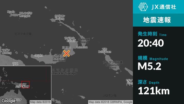 | 震源地 | パプアニューギニアのKokopoから南西140kmの地点 |