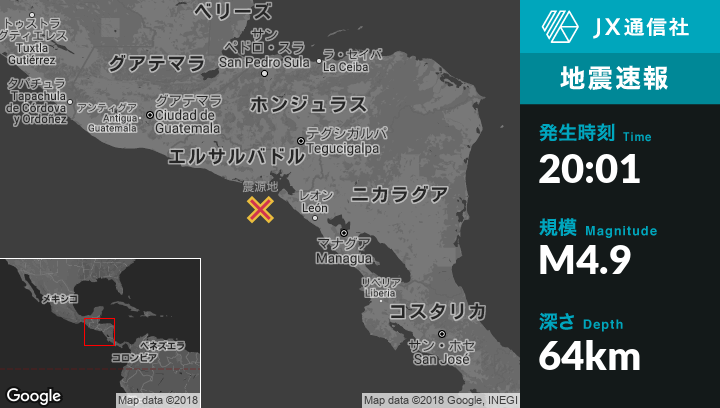 | 震源地 | エルサルバドルのIntipucaから南52kmの地点 |