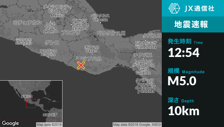 | 震源地 | メキシコのSan Miguel Panixtlahuacaから北西24kmの地点 |