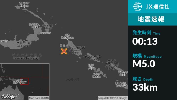 | 震源地 | パプアニューギニアのPangunaから西125kmの地点 |