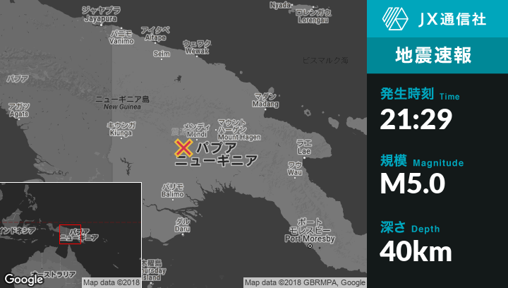 | 震源地 | パプアニューギニアのMendiから西南西46kmの地点 |