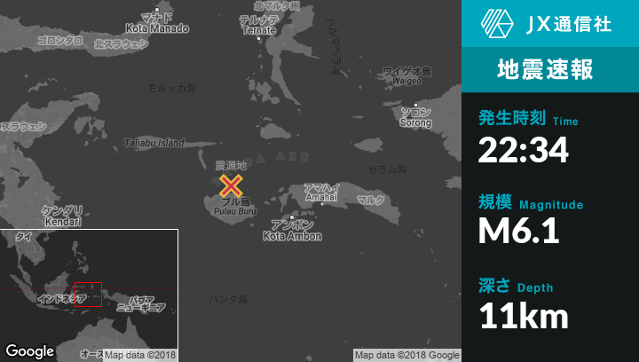 | 震源地 | インドネシアのAirbuayaから北東44kmの地点 |