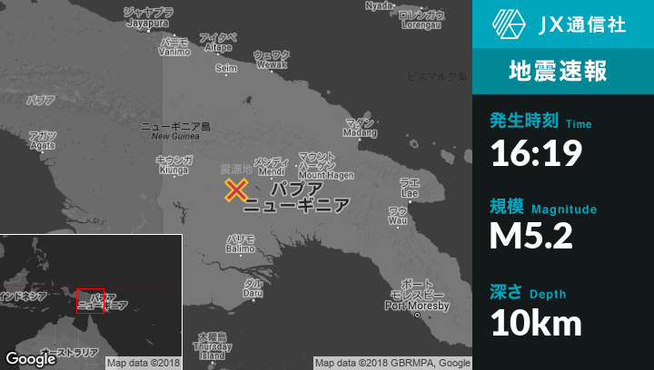 | 震源地 | パプアニューギニアのMendiから西96kmの地点 |