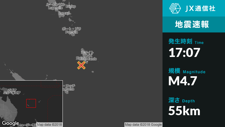 | 震源地 | バヌアツのIsangelから西南西28kmの地点 |
