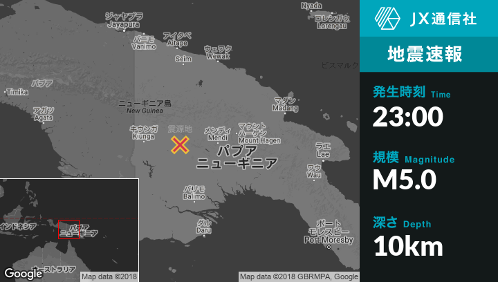 | 震源地 | パプアニューギニアのPorgeraから南西108kmの地点 |