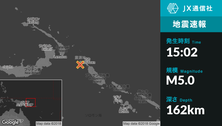 3月05日 15:02頃、パプアニューギニアのTaronから南東154kmの地点でM5.0の地震がありました。