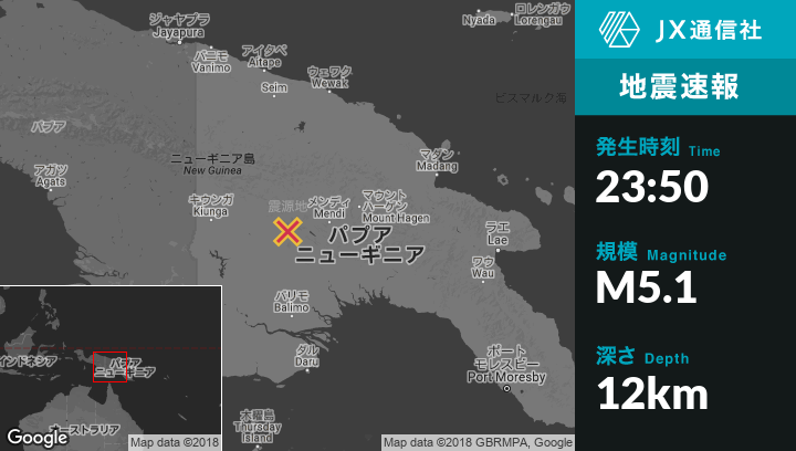 | 震源地 | パプアニューギニアのMendiから西91kmの地点 |