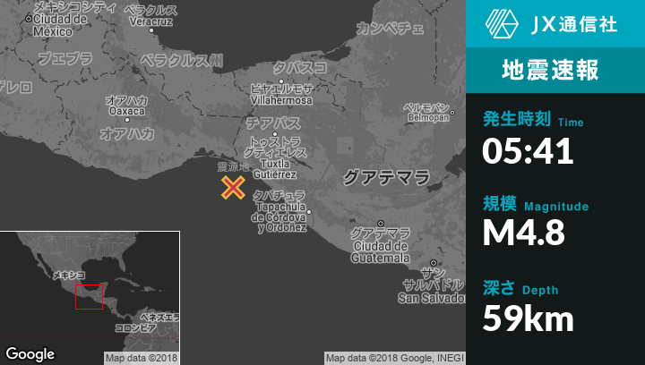 | 震源地 | メキシコのParedonから南南西55kmの地点 |
