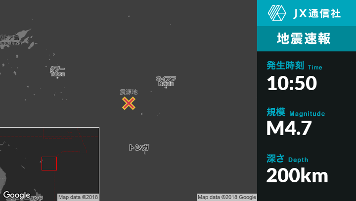 | 震源地 | トンガのPangaiから西北西152kmの地点 |