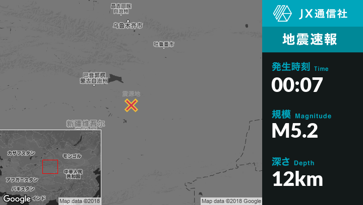 4月06日 00:07頃、中国のYanqiから南東137kmの地点でM5.2の地震がありました。