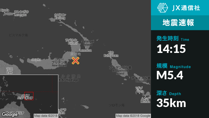 | 震源地 | パプアニューギニアのKokopoから南南西132kmの地点 |