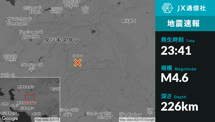 | 震源地 | タジキスタンのRoshtqal'aから東北東37kmの地点 |