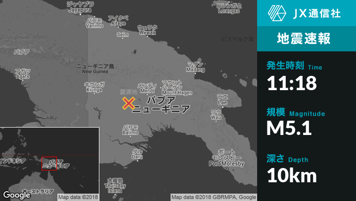 | 震源地 | パプアニューギニアのMendiから西南西96kmの地点 |