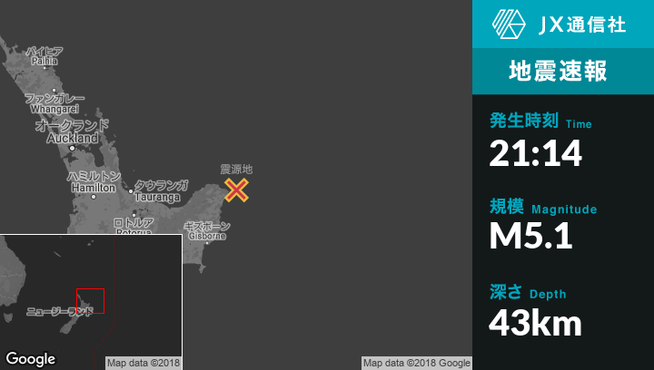 | 震源地 | ニュージーランドのGisborneから北北東137kmの地点 |