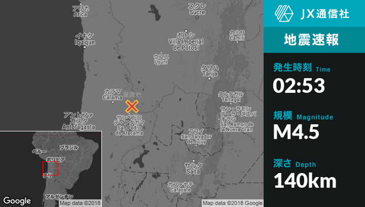 | 震源地 | チリのSan Pedro de Atacamaから北北東46kmの地点 |
