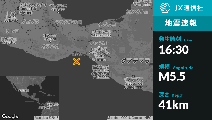 4月11日 16:30頃、メキシコのSan Francisco del Marから南南西52kmの地点でM5.5の地震がありました。