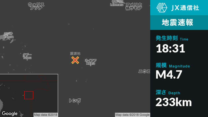| 震源地 | トンガのNeiafuから西北西137kmの地点 |