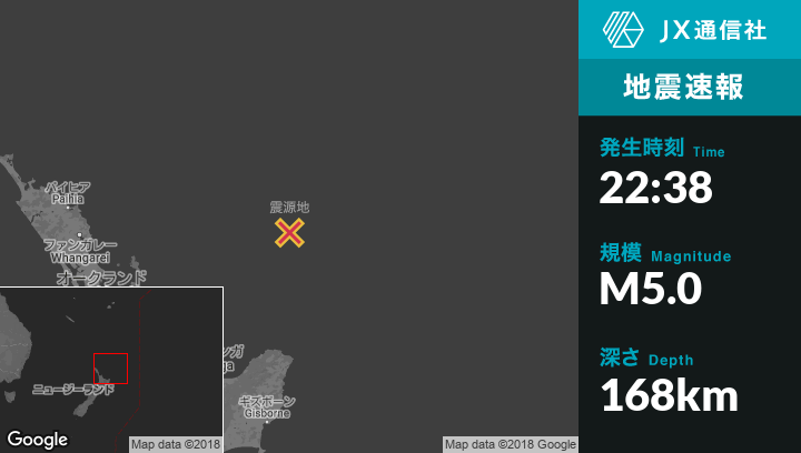 | 震源地 | ニュージーランドのTairuaから東北東283kmの地点 |