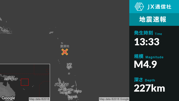 | 震源地 | バヌアツのSolaから北北西181kmの地点 |