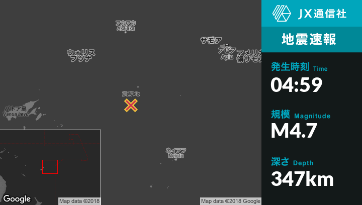 4月18日 04:59頃、トンガのHihifoから西237kmの地点でM4.7の地震がありました。
