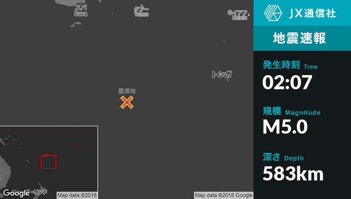 | 震源地 | フィジーのNdoi Islandから南南西190kmの地点 |