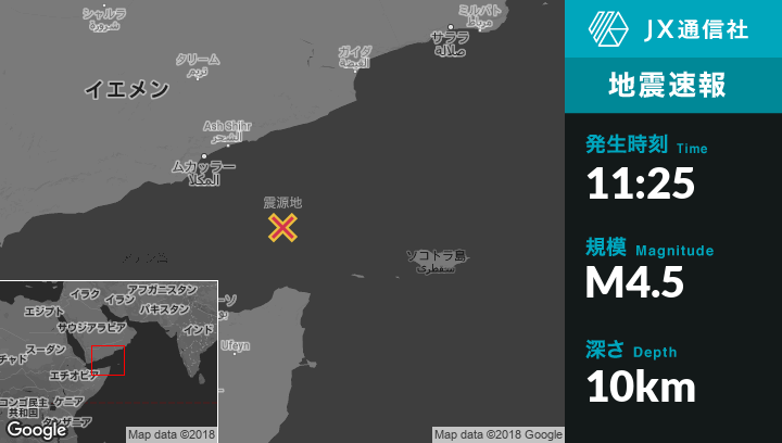 | 震源地 | ソマリアのBereedaから北北西158kmの地点 |
