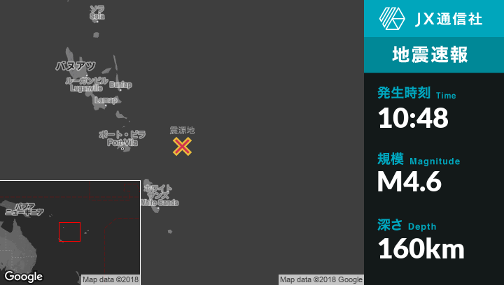 | 震源地 | バヌアツのPort-Vilaから東200kmの地点 |