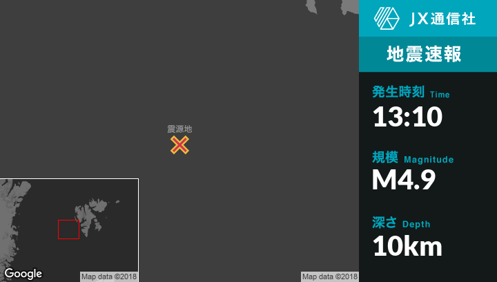 | 震源地 | スヴァールバルとヤン・マイエンのLongyearbyenから西南西209kmの地点 |