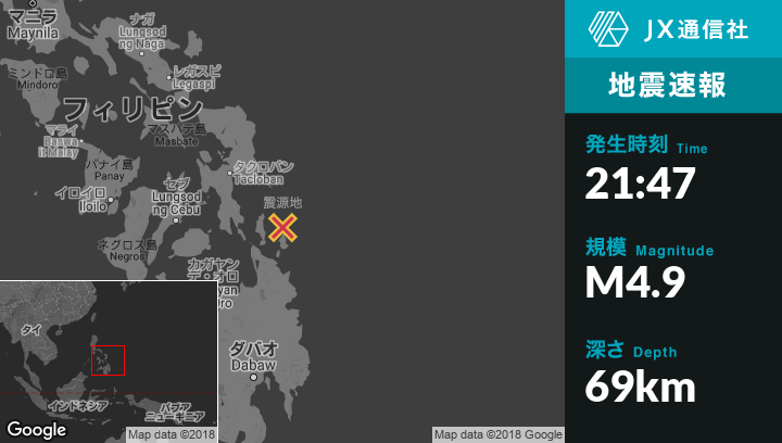 7月02日 21:47頃、フィリピンのSanta Monicaから北30kmの地点でM4.9の地震がありました。
