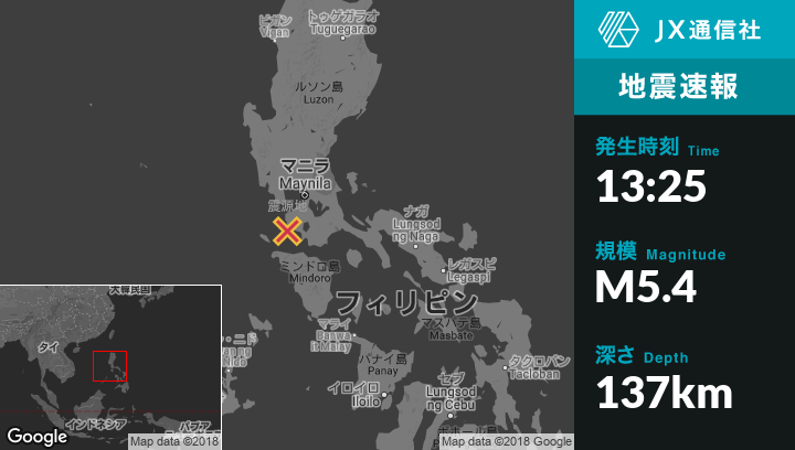 7月03日 13:25頃、フィリピンのSan Diegoから南2kmの地点でM5.4の地震がありました。