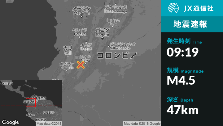 | 震源地 | コロンビアのSanta Mariaから東北東3kmの地点 |