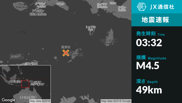 | 震源地 | インドネシアのSaumlakiから北西103kmの地点 |