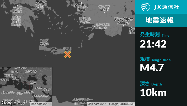 | 震源地 | ギリシャのMakry Gialosから南南東1kmの地点 |