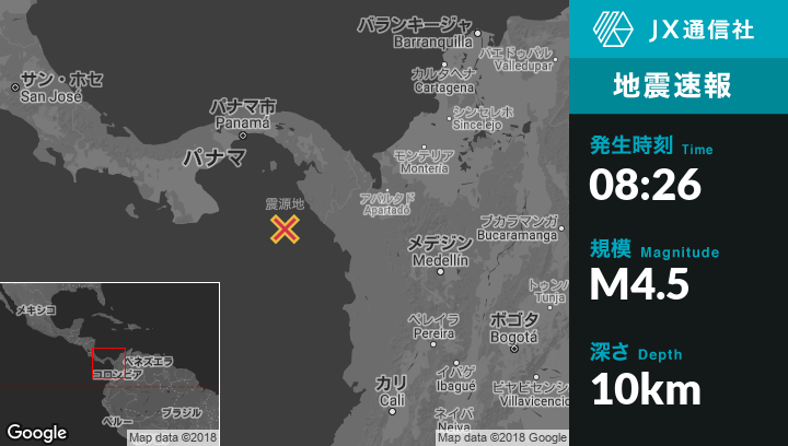 | 震源地 | パナマのJaqueから西南西65kmの地点 |
