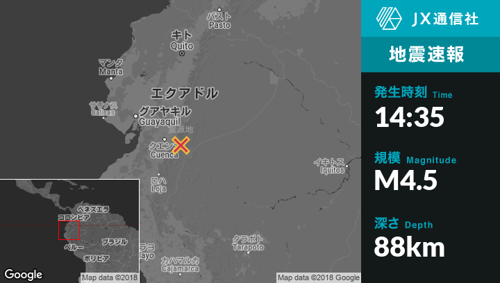 | 震源地 | エクアドルのGualaceoから東南東31kmの地点 |