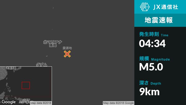 | 震源地 | 北マリアナ諸島のSaipanから東南東153kmの地点 |