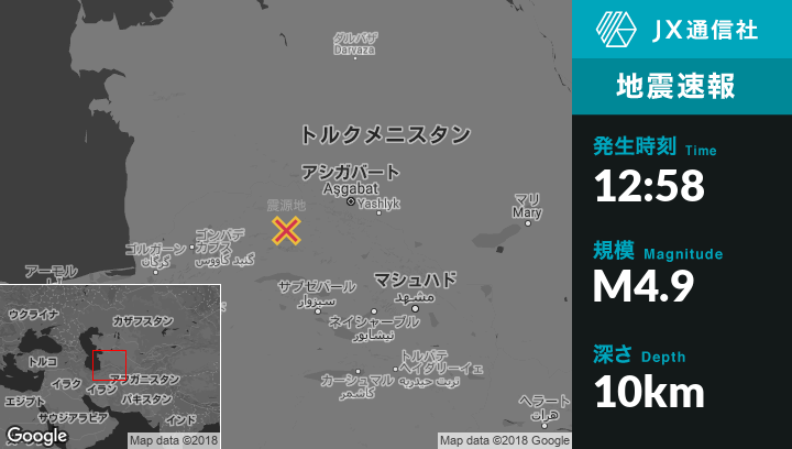 7月17日 12:58頃、イランのBojnurdから西北西29kmの地点でM4.9の地震がありました。
