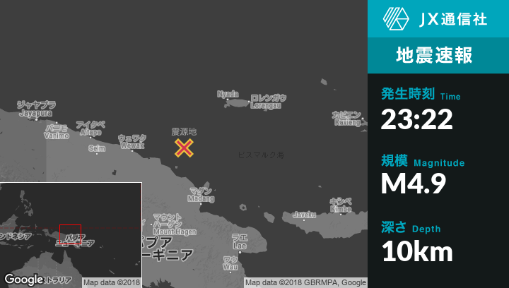 | 震源地 | パプアニューギニアのAngoramから東北東154kmの地点 |