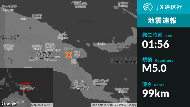 | 震源地 | パプアニューギニアのKainantuから東南東49kmの地点 |