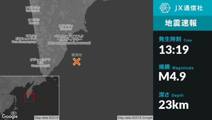 7月21日 13:19頃、ロシアのVilyuchinskから南南東132kmの地点でM4.9の地震がありました。