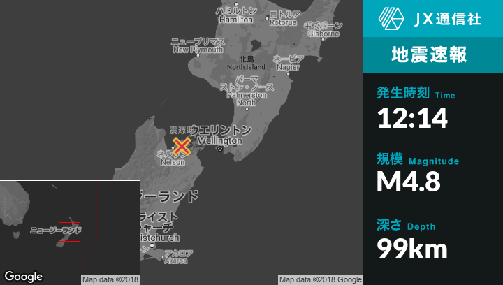 | 震源地 | ニュージーランドのNelsonから北東27kmの地点 |