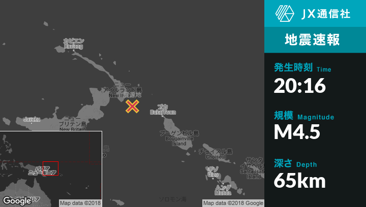 | 震源地 | パプアニューギニアのTaronから南東57kmの地点 |