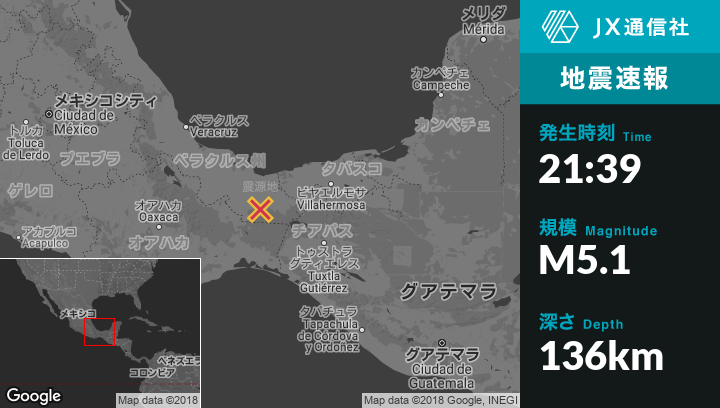 | 震源地 | メキシコのHidalgotitlanから南南東27kmの地点 |