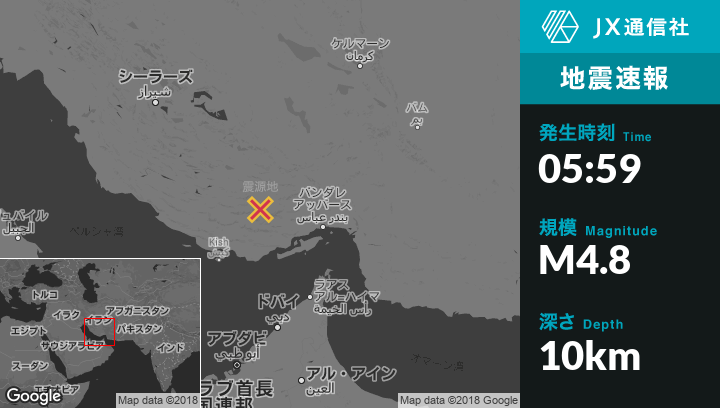 7月23日 05:59頃、イランのLarから東53kmの地点でM4.8の地震がありました。