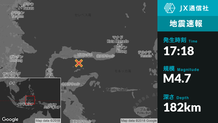 | 震源地 | インドネシアのTilamutaから南西49kmの地点 |
