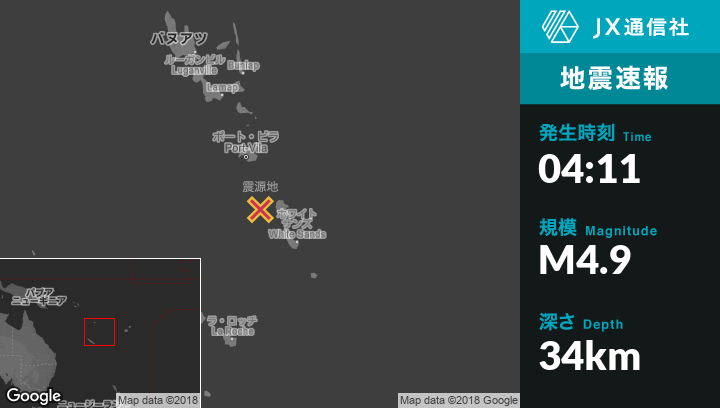 | 震源地 | バヌアツのIsangelから北西112kmの地点 |