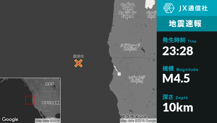 | 震源地 | オレゴンのGold Beachから西南西196kmの地点 |