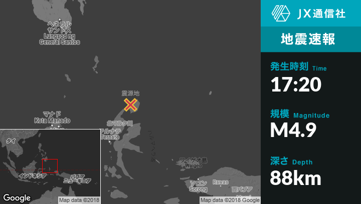 | 震源地 | インドネシアのTobeloから北北東90kmの地点 |